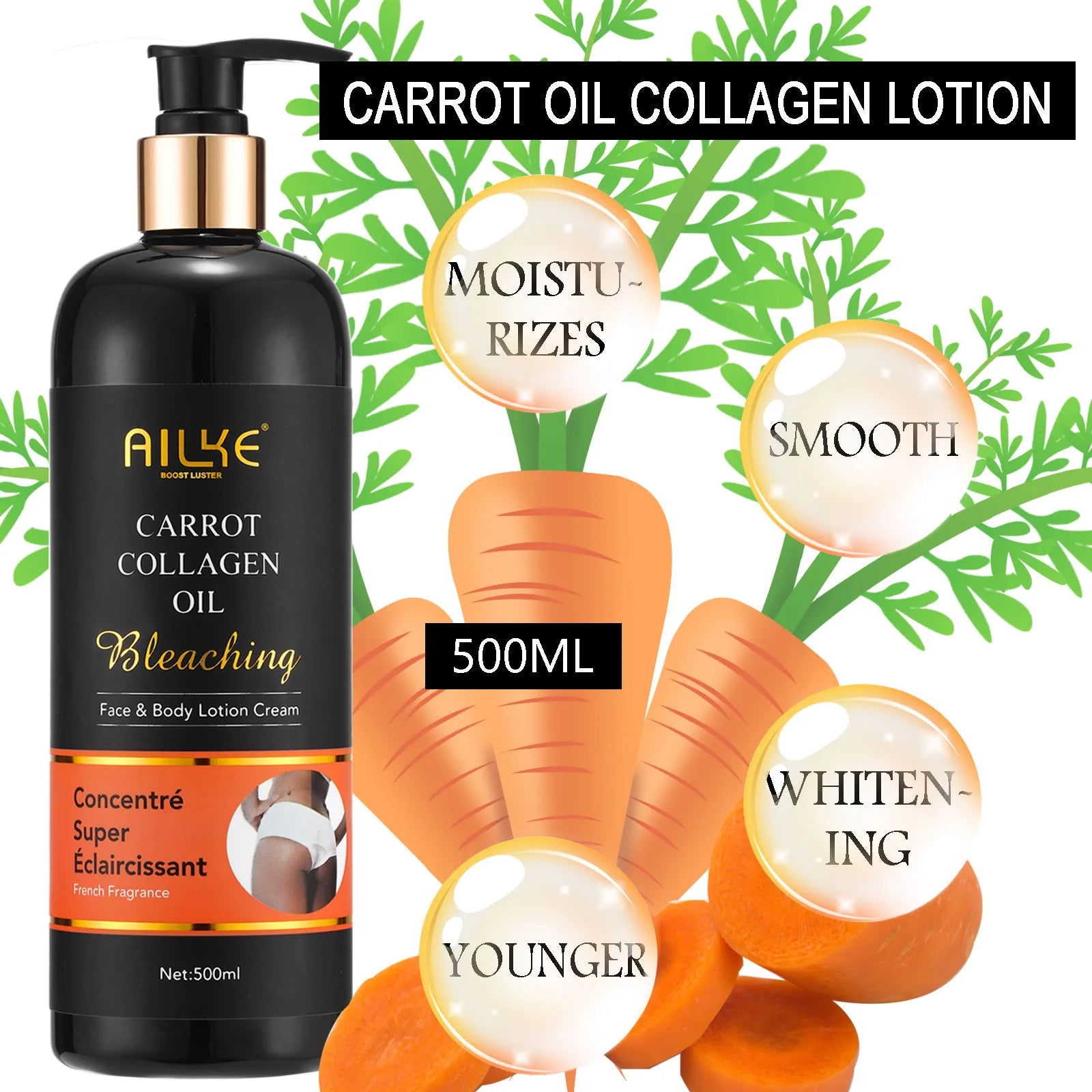 Reveal brighter, even-toned skin with a potent blend of collagen, carrot oil, and glutathione — AILKE Whitening Body Lotion With Collagen And Carrot Oil delivers a noticeable glow.