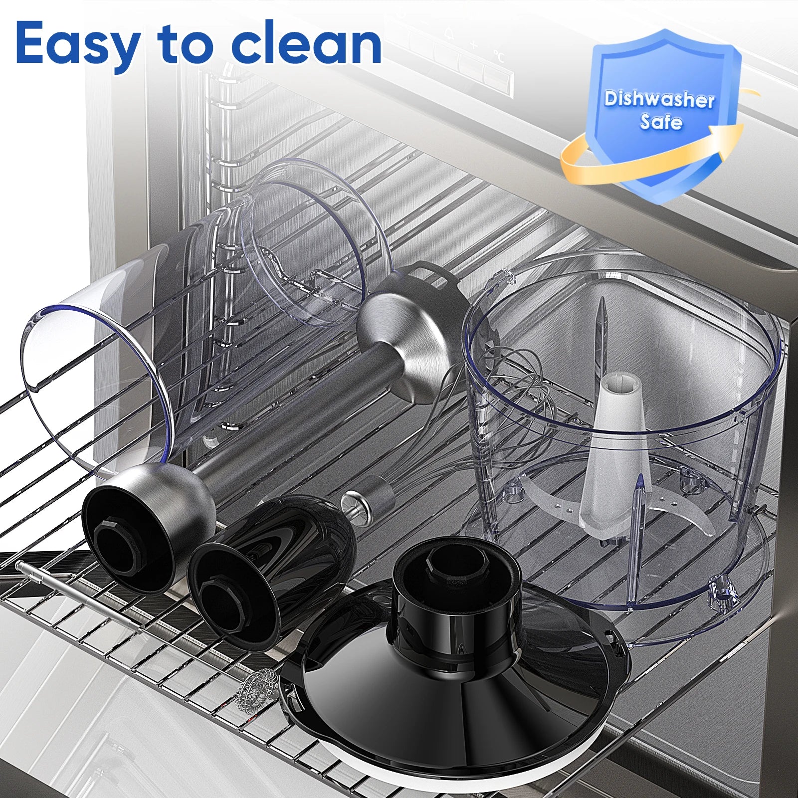 - Easy to clean and versatile—detachable blending, whisking, and frothing parts in stainless steel are dishwasher-safe; includes an 800ml chopper, 600ml smoothie cup, whisk, and milk frother (motor not submersible).