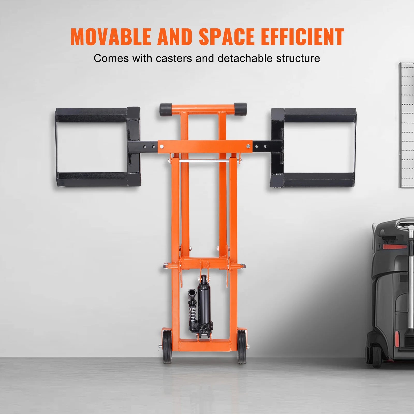 - Two handle options give you ergonomic leverage for safe lifting and controlled lowering, even when wheels are wide or misaligned.